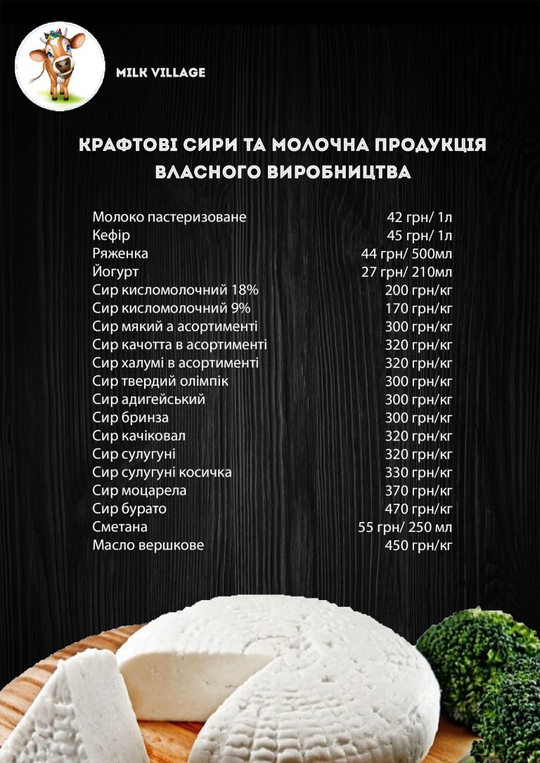 У магазині ви можете придбати найсмачнішу продукцію з власної крафтової сироварні Milk Village